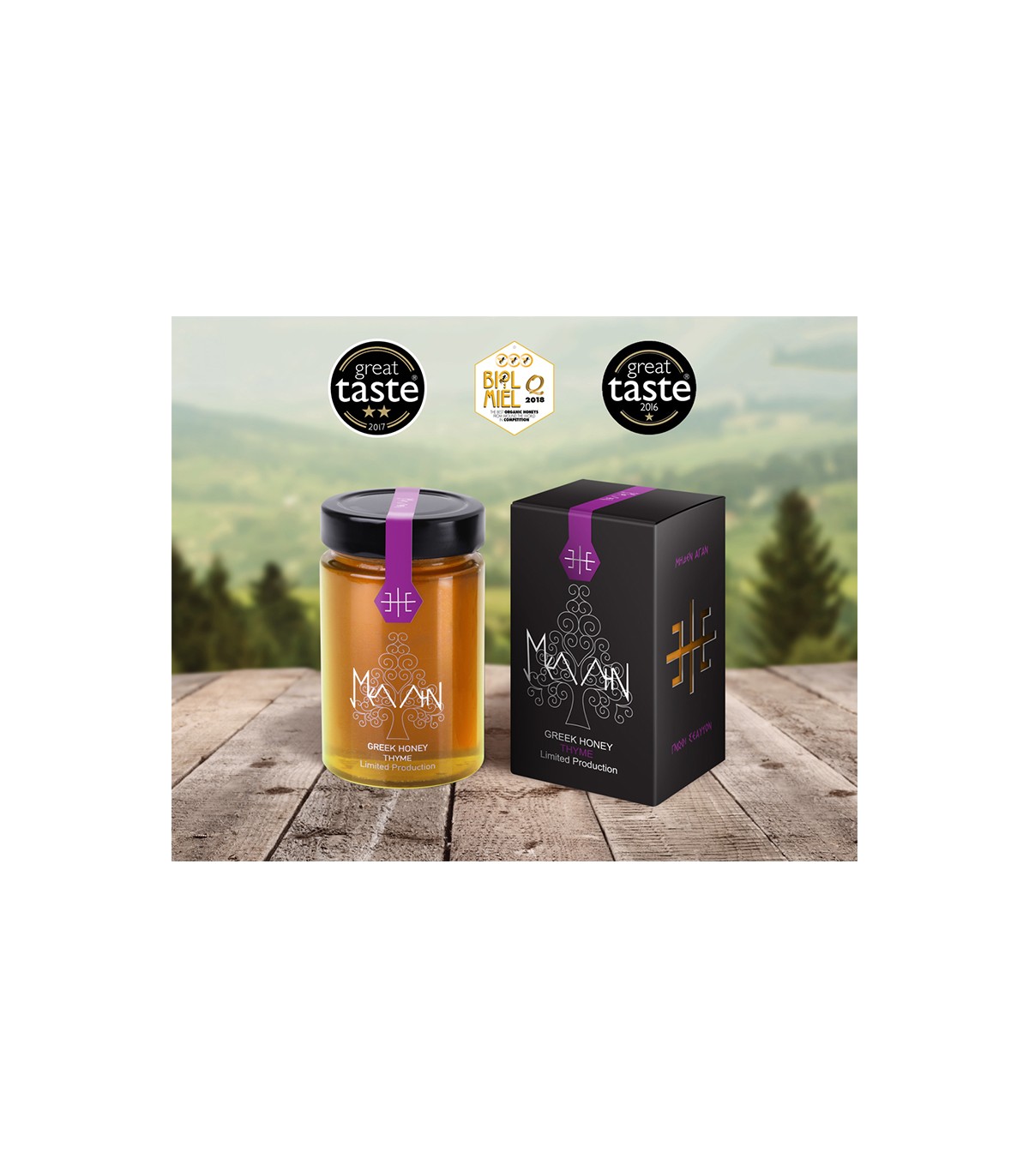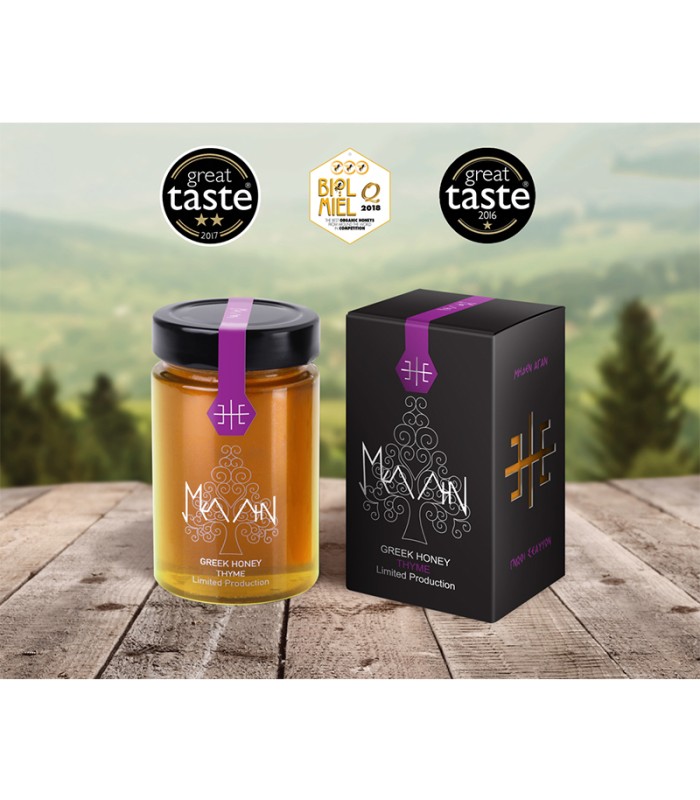 Produced in an area with a view of the Delphi landscape and the sea, in the thyme fields of Galaxidi of the Municipality of Delphi. It contains over 50 herbs and trees such as almond,oak, etc.