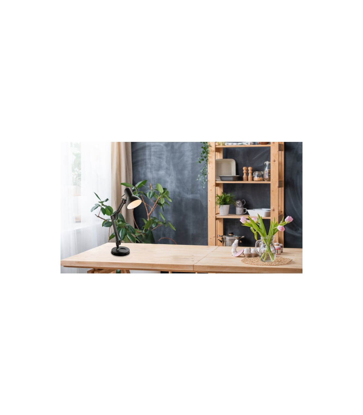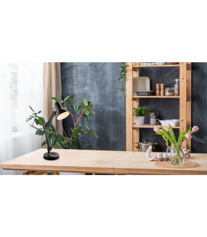 Αυτό το μαύρο επιτραπέζιο φωτιστικό είναι η ιδανική προσθήκη σε κάθε γραφείο. Είναι πολύ οικονομικό επειδή μπορούν να χρησιμοποιηθούν λαμπτήρες LED. Τρεις αρθρώσεις επιτρέπουν τη βέλτιστη ευθυγράμμιση της φωτεινής δέσμης για χαλαρή εργασία.