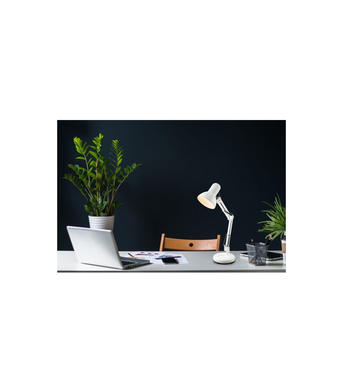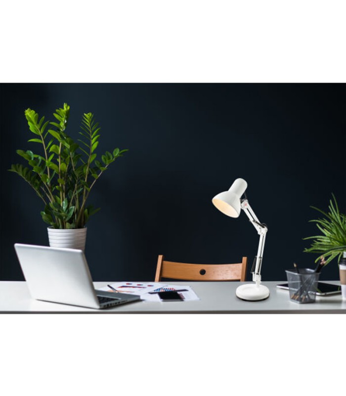 Αυτό το λευκό επιτραπέζιο φωτιστικό είναι η ιδανική προσθήκη σε κάθε γραφείο. Είναι πολύ οικονομικό επειδή μπορούν να χρησιμοποιηθούν λαμπτήρες LED. Τρεις αρθρώσεις επιτρέπουν τη βέλτιστη ευθυγράμμιση της φωτεινής δέσμης για χαλαρή εργασία.