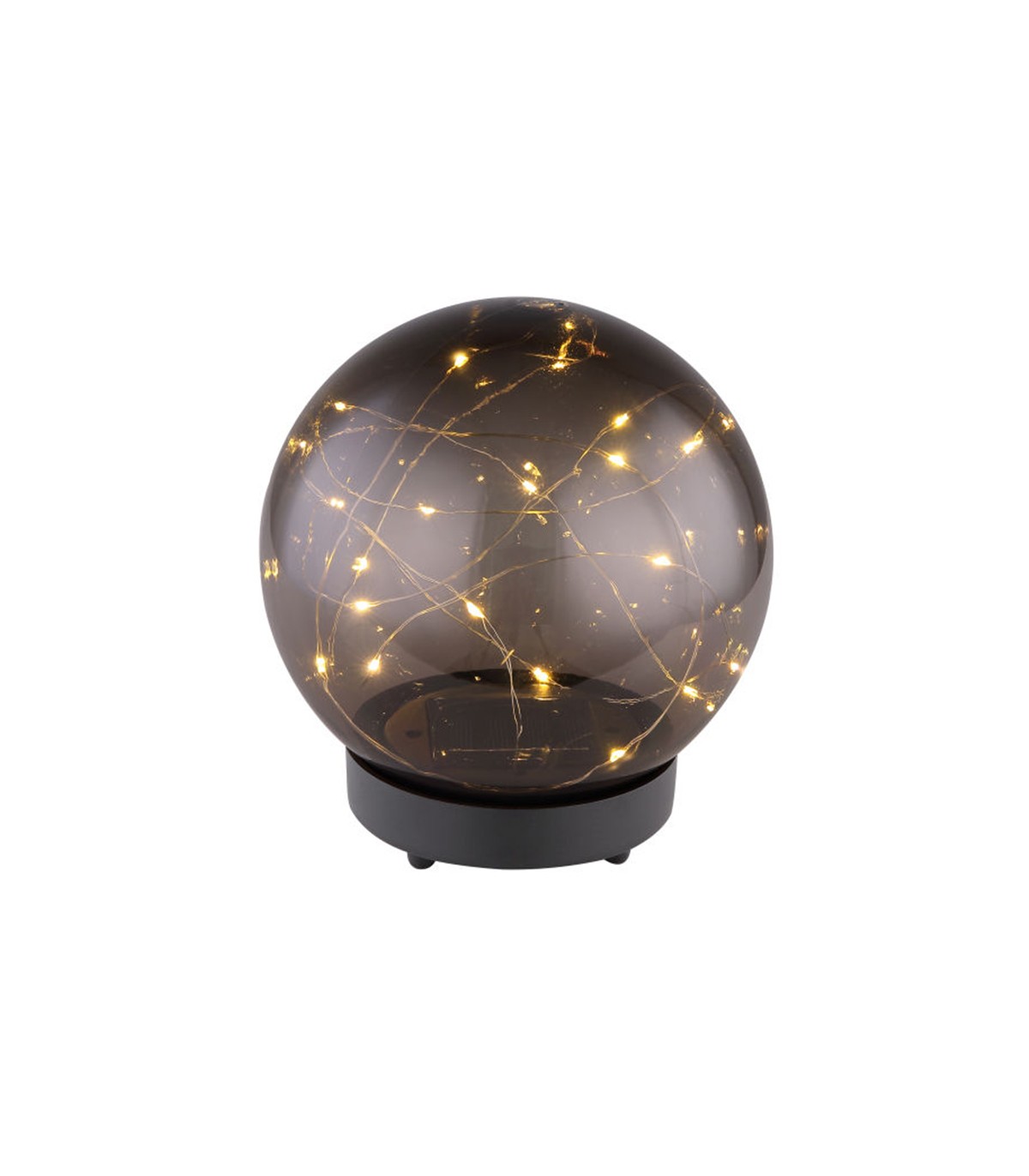 Το σφαιρικό ηλιακό φως (Ø15cm) δημιουργεί μια ιδιαίτερη ατμόσφαιρα. Η φωτεινή αλυσίδα LED στο καπνιστό γυαλί μπορεί να προσφέρει ένα μοναδικό περιβάλλον για έως και 8 ώρες όταν είναι πλήρως φορτισμένη. Ο ηλιακός λαμπτήρας διαθέτει διακόπτη ενεργοποίησης/απενεργοποίησης και συνοδεύεται από επαναφορτιζόμενες μπαταρίες.
