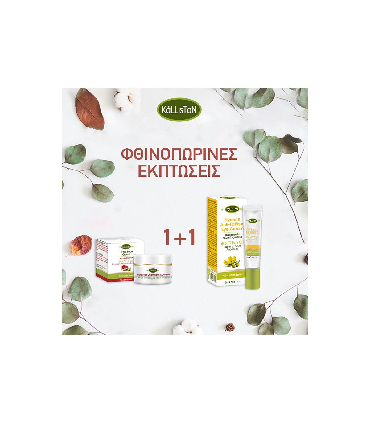 Kallistoon Κρέμα προσώπου για λιπαρή/μεικτή επιδερμίδες 50ml + Δώρο Κρέμα ματιών πολλαπλής δράσης 15ml