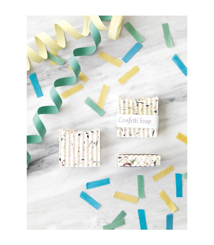 Είμαστε θερμοί υποστηρικτές του zero-waste κινήματος και προσπαθούμε διαρκώς να προσαρμόσουμε σύμφωνα με αυτό και την εργασία μας. Το σαπούνι Κομφετί είναι το πιο οικολογικό μας σαπούνι καθώς είναι φτιαγμένο από υπολείμματα προηγουμένων παραγωγών μας. Πολλές φορές μπορεί να μην πετύχουμε το τέλειο σχήμα σε ένα σαπούνι ή να περισσέψει σαπουνόμαζα κατά την παραγωγή. Δίνουμε λοιπόν σε αυτά τα σαπούνια μία δεύτερη ευκαιρία. Περιέχει άρωμα “φρέσκου σαπουνιού”.