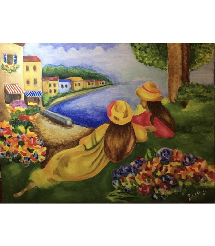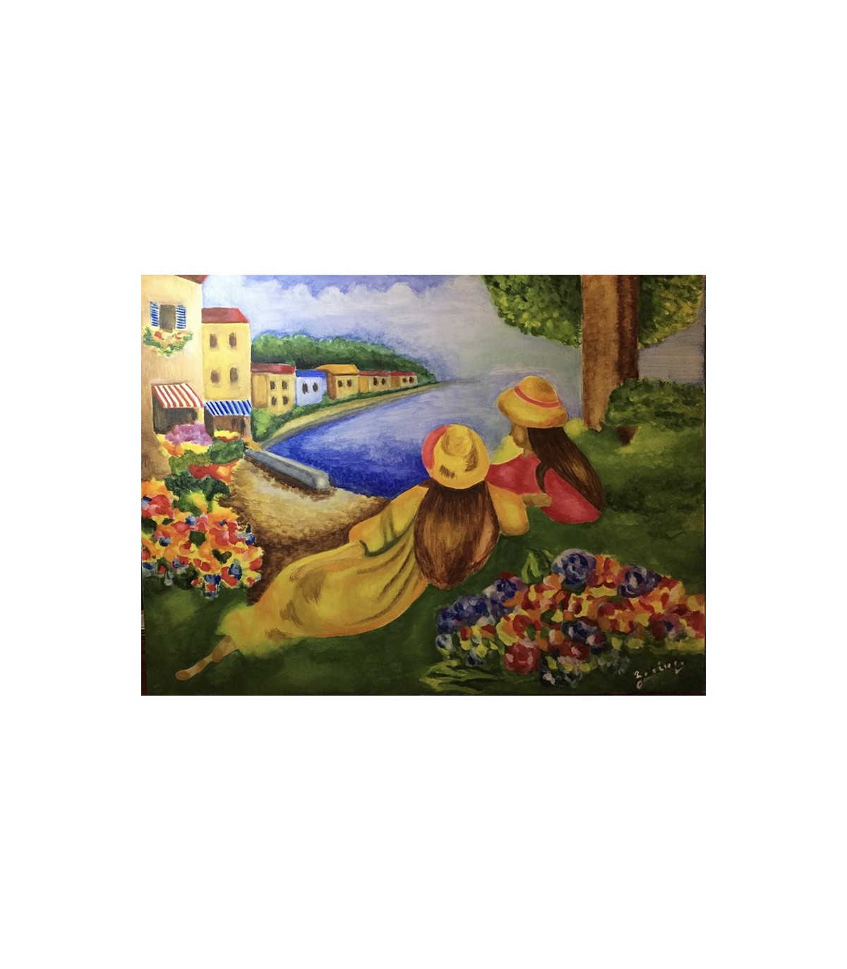 Two girls by Zarinèe, 79,5x59,5cm, oil on canvas. EUR 150
