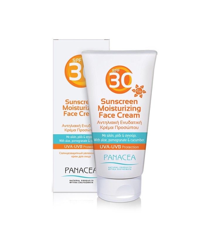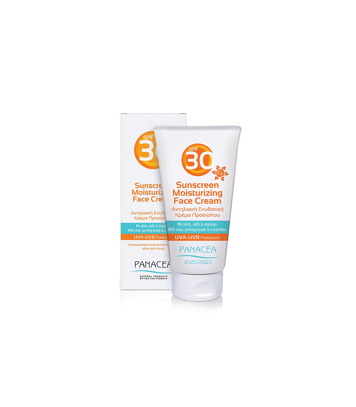 Panacea Αντηλιακή ενυδατική κρέμα προσώπου με αλόη, ρόδι , αγγούρι και δείκτη προστασίας SFP30, 50ml